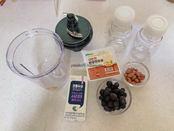 한큐주스 3회 분 : 연두부 160g + 땅콩 30알 + 블루베리 45알 + 두유 190ml 한 팩