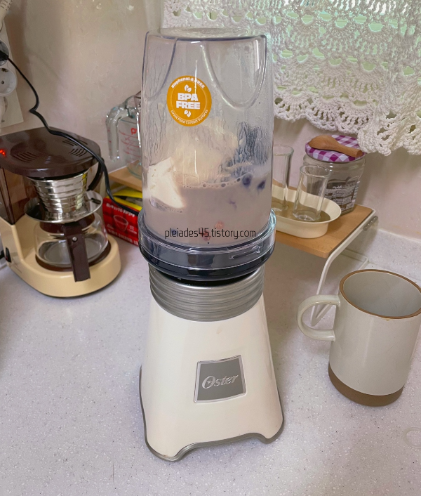 블루베리는 항산화 식품이고 맛을 더 맛있게 만들기 위해 넣은 것.
